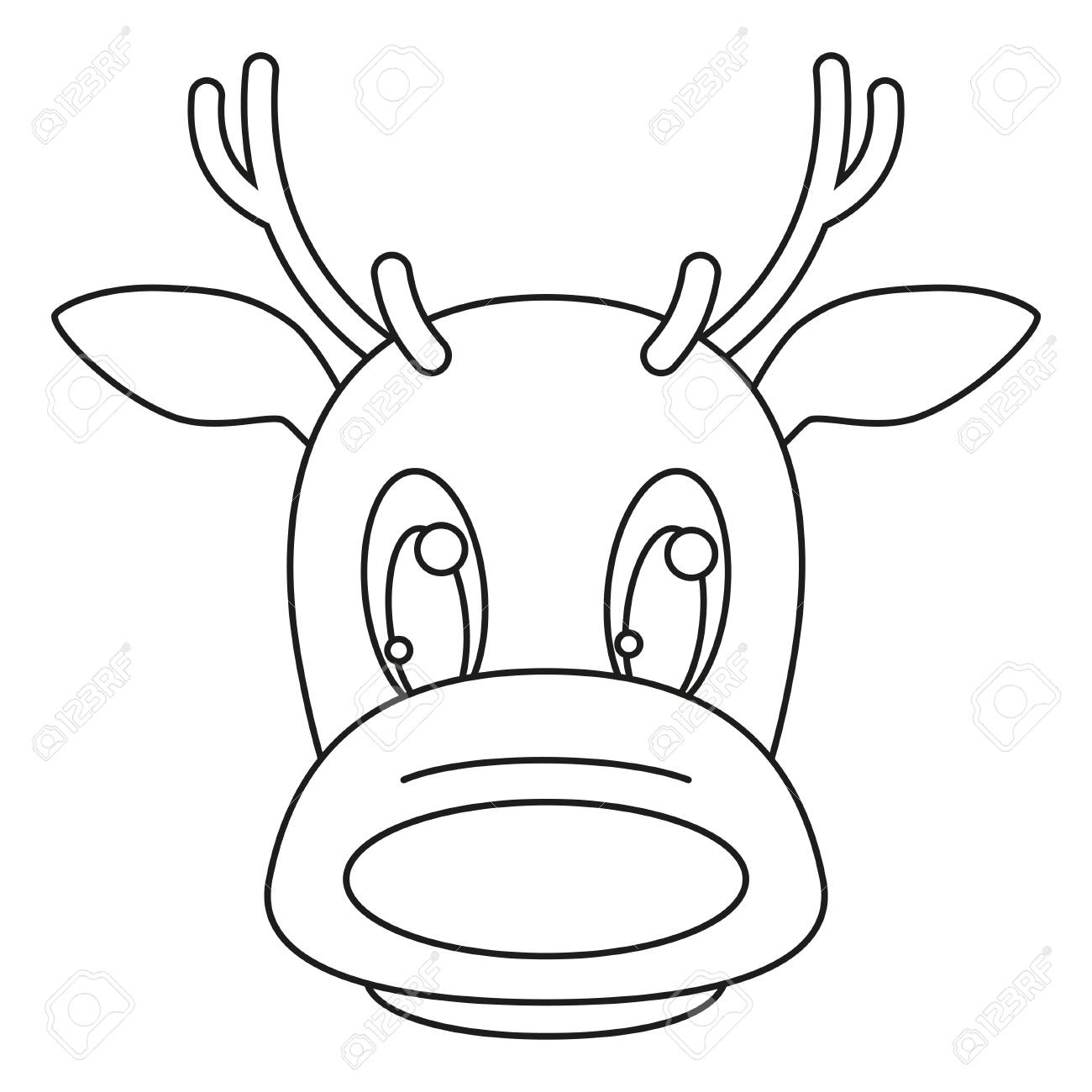 Line Art Black And White Reindeer Head. Coloring Book Page ...