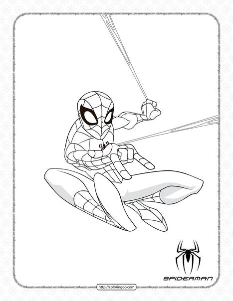 50 Wonderful Spiderman Coloring Pages Your Toddler Will Love Try these Spiderman coloring pages to print and enjoy coloring with your child. 1. Spiderman Swinging Into Action: Here is a classic picture of Spiderman in action. This first Coloring page shows Spiderman swinging in the air over the city. Your kid probably would recollect seeing the image in cartoon shows as well as in movies.